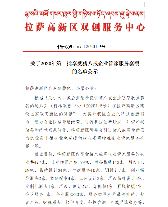 关于2020年第一批享受猪八戒企业管家服务套餐 的名单公示