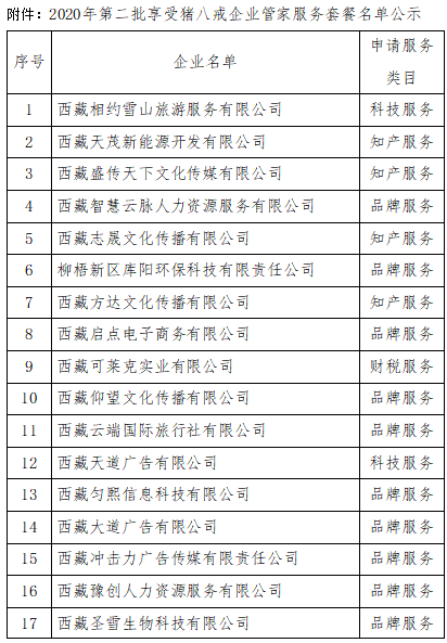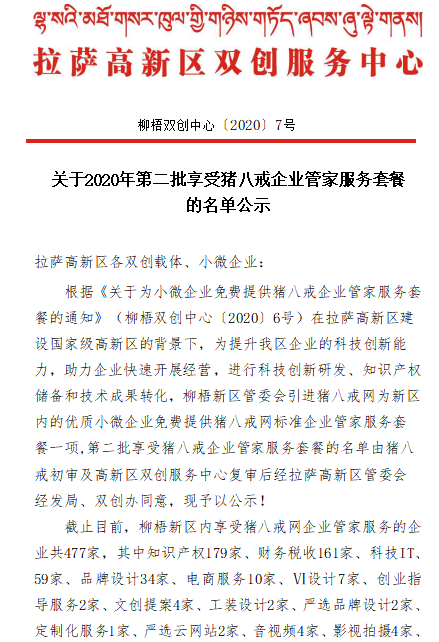 关于2020年第二批享受猪八戒企业管家服务套餐 的名单公示