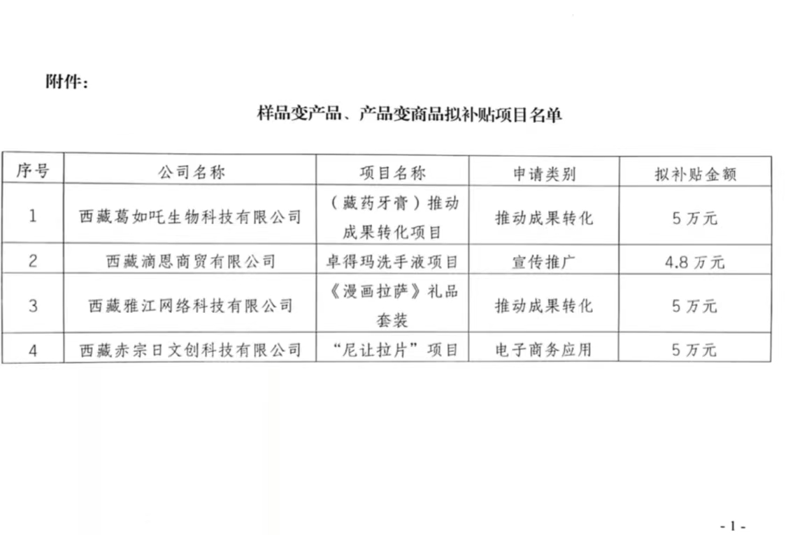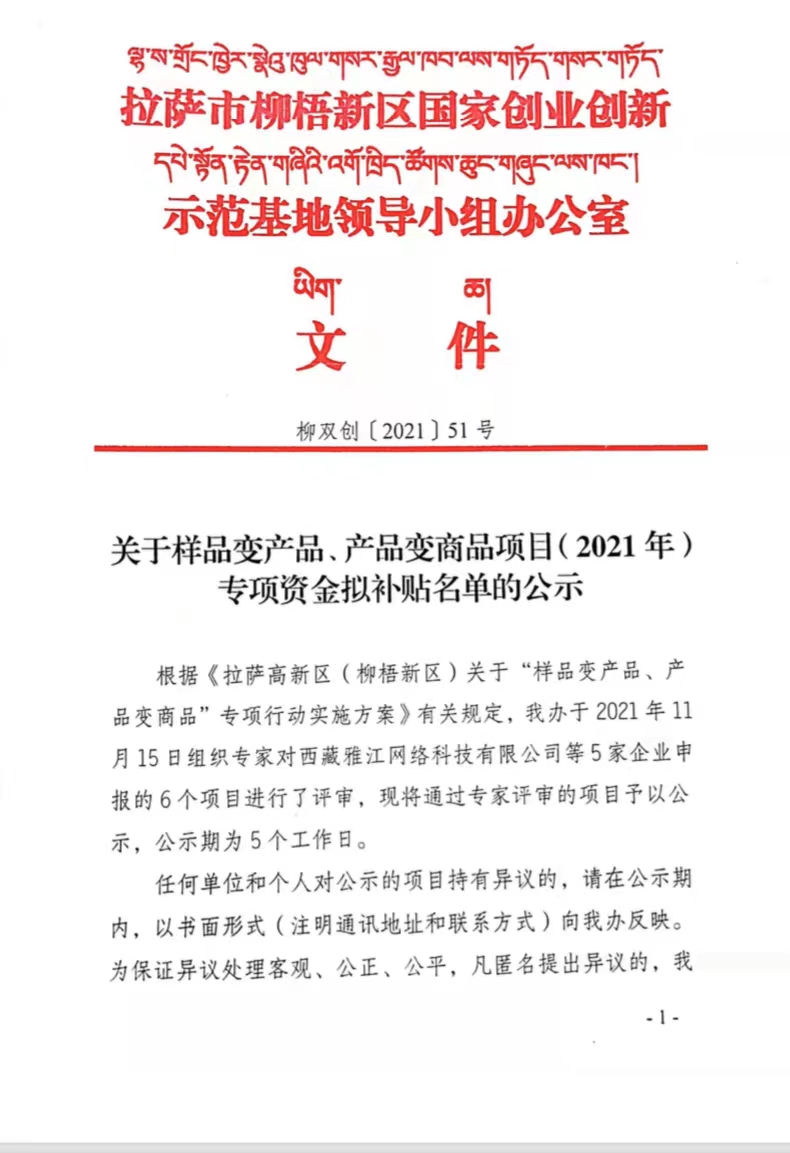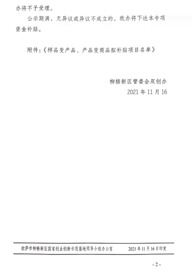 关于样品变产品、产品变商品项目(2021年)专项资金拟补贴名单的公示
