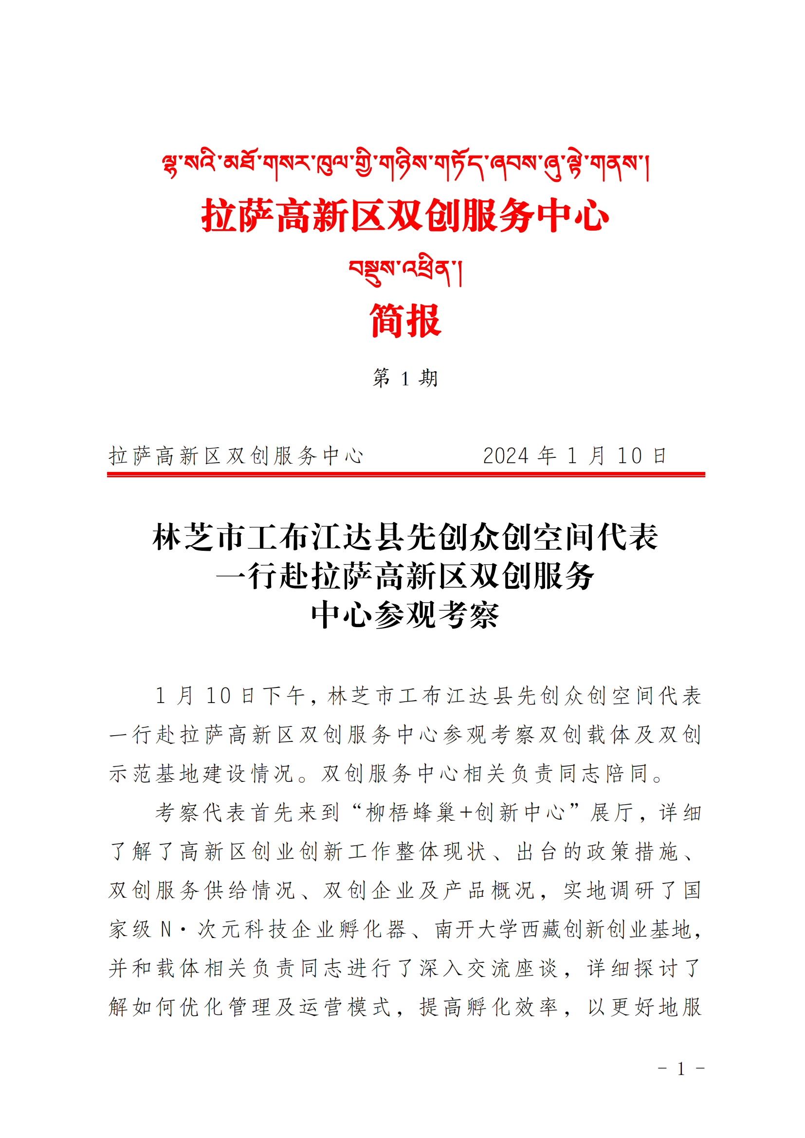 林芝市工布江达县先创众创空间代表一行赴拉萨高新区双创服务中心参观考察