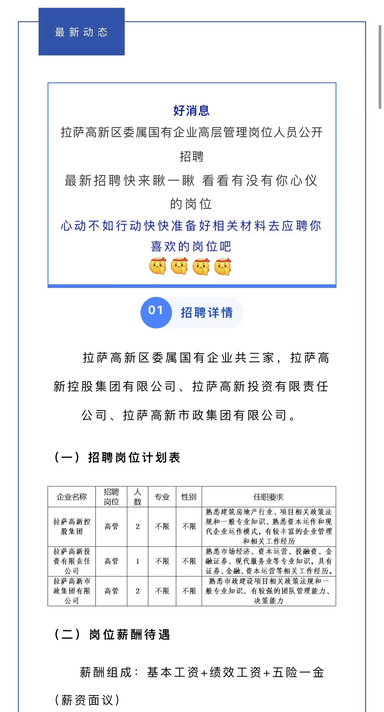 拉萨高新区委属国企高层管理岗位人员公开招聘啦