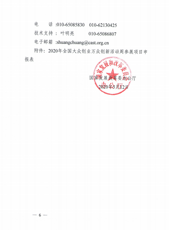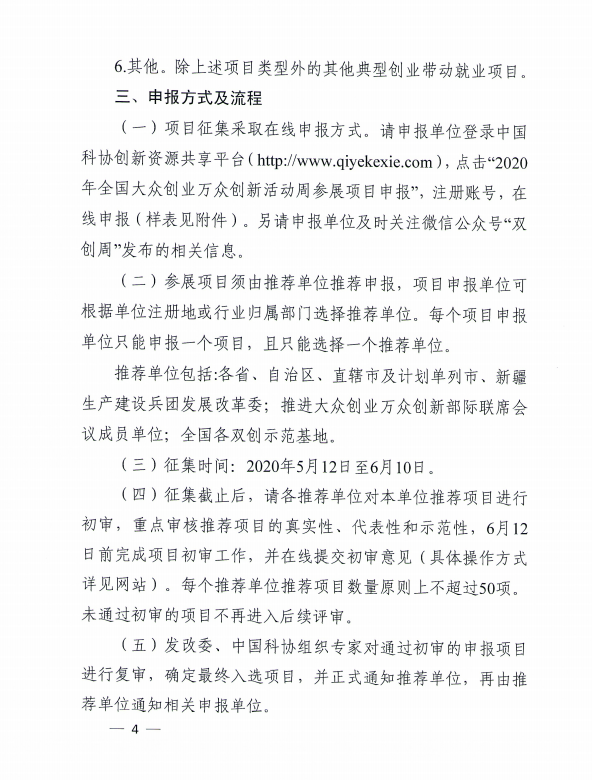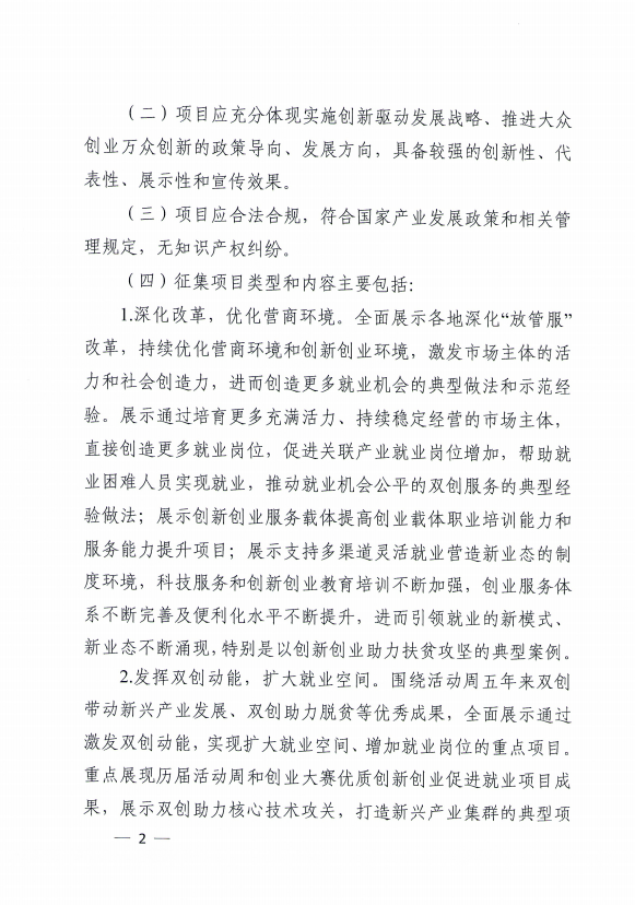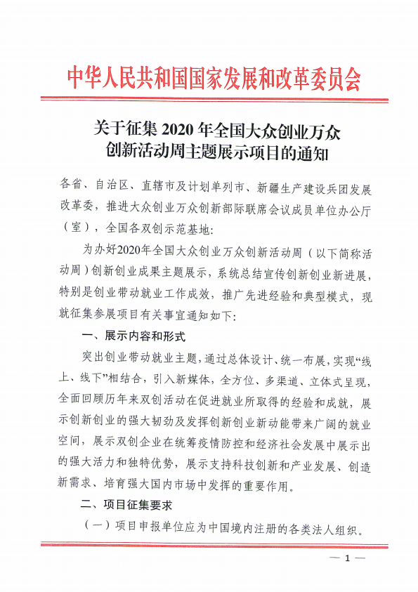 中华人民共和国国家发展和改革委员会关于《关于征集 2020年全国大众创业万众创新活动周主题展示项目》的通知。