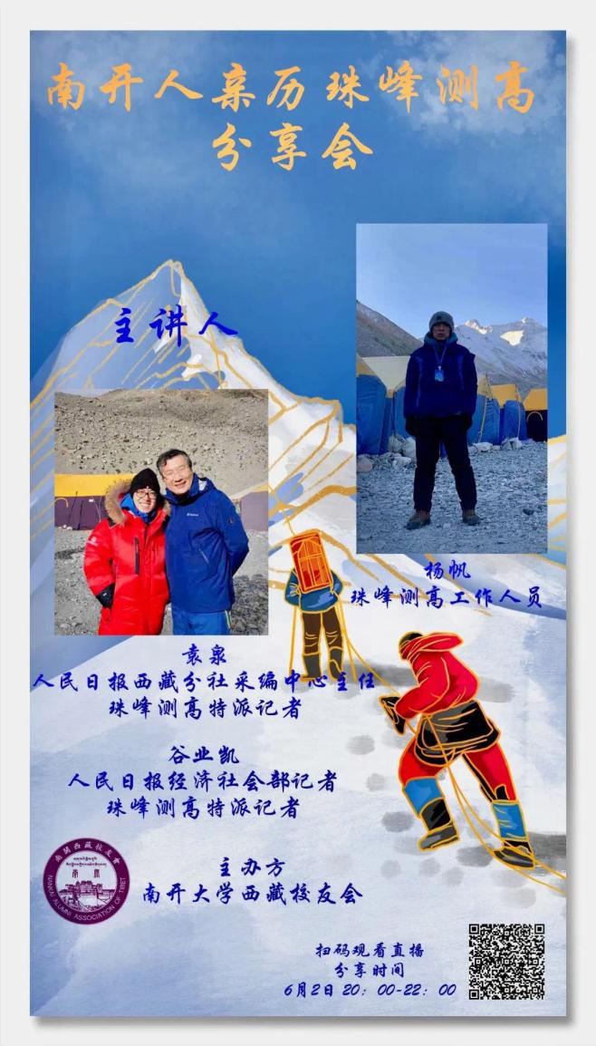 主讲人袁泉:南开大学1997级校友,人民日报社珠峰高程测量特派记者